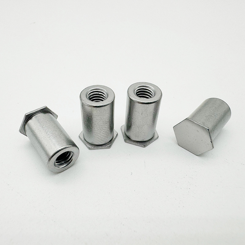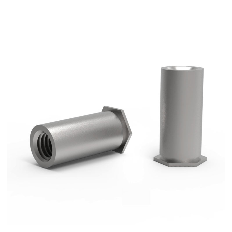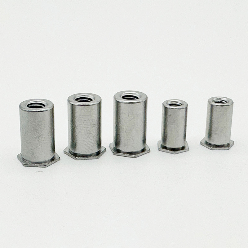 hexagon ຫົວແບນຕາບອດຕາບອດ hexagon riveded ຫມາກແມ່ນ fastener ເຫມາະສໍາລັບວັດຖຸບາງໆ. ມັນແຂງແຮງແລະທົນທານ, ແລະກະທູ້ບໍ່ແມ່ນງ່າຍທີ່ຈະມີຮູບຊົງ hex ສໍາລັບການຕິດຕັ້ງງ່າຍ, ແລະຮ່າງກາຍຫມາກແຫ້ງເປືອກແຂງມີຮູຕາບອດ. ໃນເວລາທີ່ທ່ານຕິດຕັ້ງມັນ, ຫມາກແຫ້ງເປືອກແຂງເຮັດໃຫ້ກົນຈັກ (ຄ້າຍຄື riveting) ເພື່ອລັອກໃສ່ວັດສະດຸ.