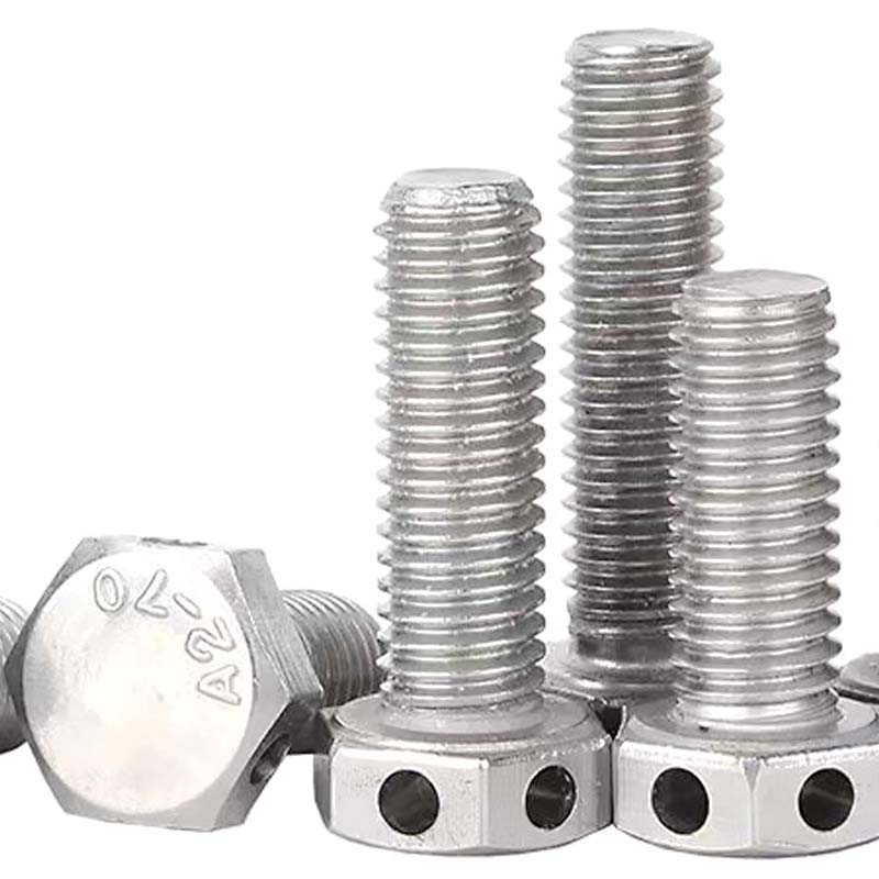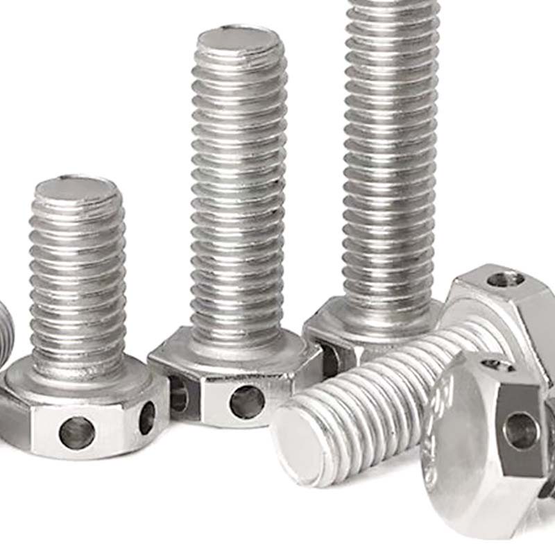 hexagon ຫົວຫນ້າສາຍທີ່ມີຮູເບີນໄດ້ແກ້ໄຂບັນຫາທີ່ Bolts ຍັງແຫນ້ນຢູ່ໃນສະພາບແວດລ້ອມທີ່ມີການສັ່ນສະເທືອນສູງ. ໂດຍການຖ່າຍທອດສາຍເຫຼັກໂດຍຜ່ານຮູຢູ່ແຄມຂອງໄລປະຕູທີ່ຢູ່ຕິດກັນ, "ລັອກ" ສາມາດສ້າງຕັ້ງຂຶ້ນເພື່ອປ້ອງກັນບໍ່ໃຫ້ສາຍເລືອດຈາກພວນ. ນີ້ແມ່ນລາຄາຖືກກວ່າແລະງ່າຍດາຍກ່ວາການໃຊ້ແກ່ນຫຼືການເຮັດກາວທີ່ຕ້ານທານພິເສດ. ພວກມັນຖືກນໍາໃຊ້ເພື່ອແກ້ໄຂພາກສ່ວນລົດຖີບ, ກະດານເຮືອບິນຫຼືສ່ວນປະກອບຂອງເຄື່ອງຈັກທີ່ສັ່ນເລື້ອຍໆ.