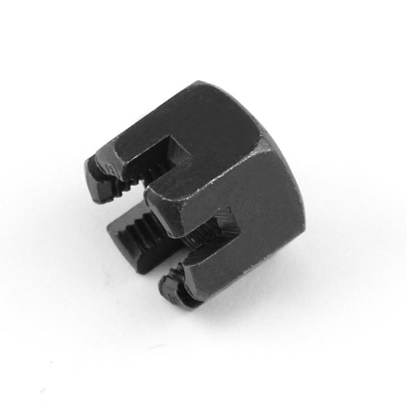 | ຄຸນນະສົມບັດທີ່ສໍາຄັນ | ຊ່ອງສຽບເຫຼົ່ານີ້ຢູ່ເທິງສຸດແມ່ນໃຊ້ເພື່ອວາງ pin lock ຫຼືເຊືອກຄວາມປອດໄພ. ເມື່ອທ່ານແຫນ້ນຫມາກແຫ້ງເປືອກແຂງ, ຜ່ານ pins ຜ່ານຊ່ອງເຫຼົ່ານີ້ແລະຮູສຸດ bolt. ນີ້ຈະແກ້ໄຂມັນຢູ່ໃນສະຖານທີ່ (ເຖິງແມ່ນວ່າມີການສັ່ນສະເທືອນທີ່ເຂັ້ມແຂງ, ຫມາກແຫ້ງເປືອກແຂງຈະບໍ່ loosen). ນີ້ແມ່ນ lock ກົນຈັກງ່າຍດາຍທີ່ບໍ່ຮຽກຮ້ອງໃຫ້ມີການເຄືອບສະລັບສັບຊ້ອນຫຼືອົງປະກອບເພີ່ມເຕີມ. |