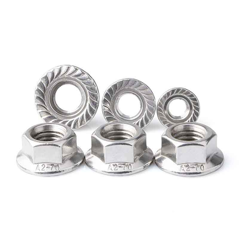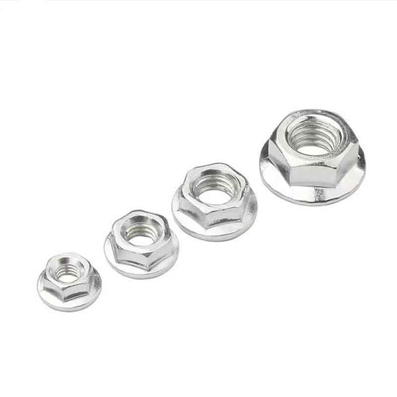 ແກ່ນ hexagon ປະສິດທິພາບສູງທີ່ມີ flange ປະຕິບັດຕາມມາດຕະຖານສາກົນທົ່ວໄປທີ່ກໍານົດຂະຫນາດທີ່ແນ່ນອນແລະຄຸນສົມບັດກົນຈັກ. ມາດຕະຖານຕົ້ນຕໍລວມມີ ISO 4161 (ເຄີຍເປັນ DIN 6926) ແລະ ASME B18.2.2. ຂະຫນາດກວມເອົາສິ່ງຕ່າງໆເຊັ່ນຄວາມກວ້າງ hex ໃນທົ່ວຮາບພຽງ (AF), ຄວາມສູງທັງຫມົດ, ເສັ້ນຜ່າກາງຂອງ flange, ແລະຂະຫນາດ thread / pitch (ເຊັ່ນ: M12x1.75). ເສັ້ນຜ່າສູນກາງຂອງ flange ແມ່ນໃຫຍ່ກວ່າສ່ວນ hex, ນັ້ນແມ່ນເຫດຜົນທີ່ມັນຊ່ວຍກະຈາຍການໂຫຼດ. ພວກເຂົາເຈົ້າມາໃນຂະຫນາດກະທູ້ metric ແລະ imperial ທົ່ວໄປ, ປົກກະຕິແລ້ວຈາກ M5 / M6 ເຖິງ M36, ຫຼື 1/4 "ເຖິງ 1.5", ດັ່ງນັ້ນເຂົາເຈົ້າເຮັດວຽກສໍາລັບຄວາມຕ້ອງການວິສະວະກໍາທີ່ແຕກຕ່າງກັນ.