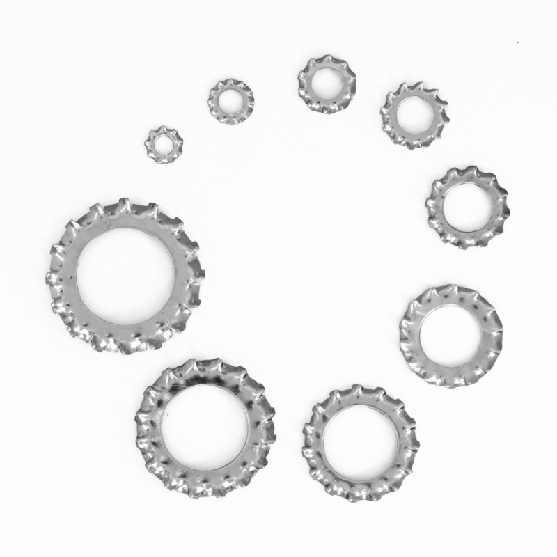 A:ເຄື່ອງຊັກຜ້າພາຍໃນລັອກພາຍໃນແມ່ນເຮັດສໍາລັບສະຖານທີ່ທີ່ມີການສັ່ນສະເທືອນຫຼາຍ, ມັກໃນລົດຫຼືເຄື່ອງຈັກ. ແຂ້ວຢູ່ທາງຂ້າງຂຸດເຂົ້າໄປໃນກະດານ / ຫມາກໄມ້ແລະພື້ນຜິວທີ່ພວກເຂົາຕິດຢູ່, ສ້າງຄວາມຂັດແຍ້ງທີ່ຕໍ່ສູ້ກັບການຫມູນວຽນ. ສິ່ງນີ້ຢຸດພວກເຂົາຈາກການພວນໃນເວລາທີ່ມີການເຄື່ອນໄຫວຫຼືການໂຫຼດຫນັກ, ຮັກສາການເຊື່ອມຕໍ່ໃຫ້ປອດໄພໃນໄລຍະເວລາ. ການອອກແບບທີ່ເປັນແຂ້ວເຮັດວຽກໄດ້ດີໃນວັດສະດຸທີ່ອ່ອນຫຼືຫນ້າດິນທີ່ບໍ່ດີສົມບູນ.