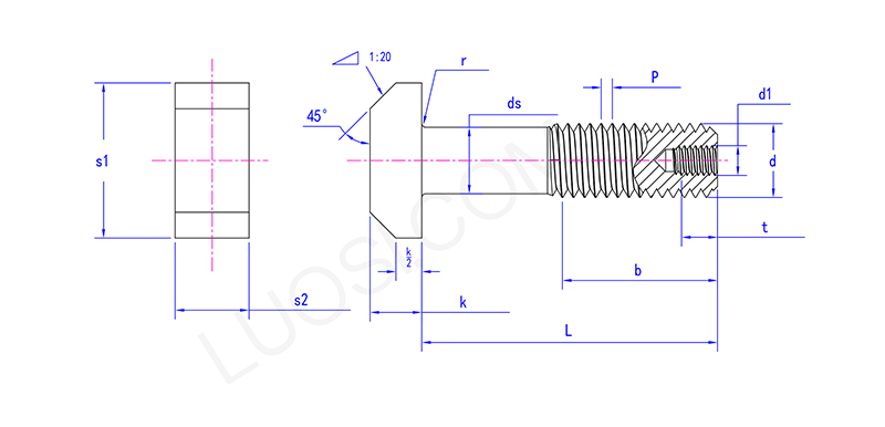 ຫົວຫນ້າຂອງການຫຼຸດລົງຂອງ shank t bolt ກັບຮູແມ່ນຄ້າຍຄືກັບ rhombus ແລະສາມາດຕິດຢູ່ໃນສະບັນທີ່ຈະຖືກແກ້ໄຂແລະບໍ່ຫມຸນ. ສ່ວນກາງຂອງສະກູຂອງມັນໄດ້ກາຍເປັນເບົາບາງລົງ, ນັ້ນແມ່ນ "ໄມ້ເທົ້າ" shrunken ", ແລະຂຸມກໍ່ໄດ້ຖືກເຈາະຢູ່ດ້ານລຸ່ມຂອງສະກູ. ພາຍໃນເປັນຮູ.