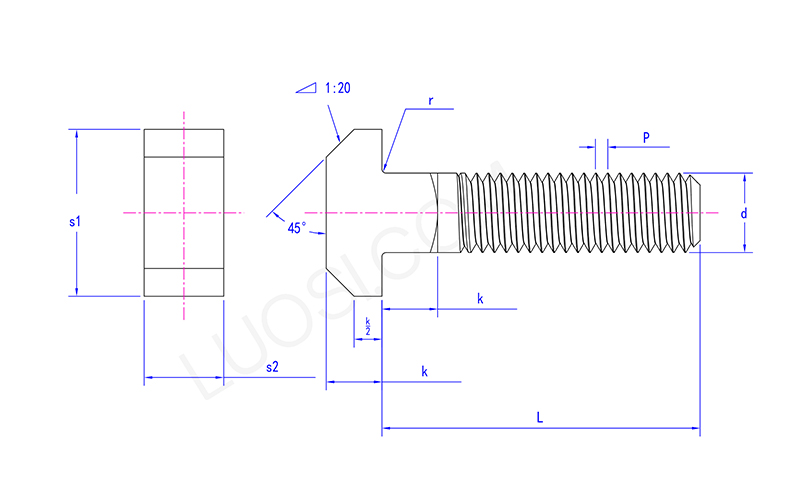 ໄລປະຕູຄໍຄໍມົນທົນ TOLTS ແມ່ນສາມາດຮັບຮູ້ໄດ້. ເບິ່ງຈາກຂ້າງ, ສ່ວນທີ່ຫົວເຊື່ອມຕໍ່ໄປຫາສະກູ, ນັ້ນແມ່ນຄໍ, ເປັນຮູບສີ່ຫຼ່ຽມມົນ, ສະອາດແລະຮຽບຮ້ອຍ ຍິ່ງໄປກວ່ານັ້ນ, ຄວາມຍາວຂອງຄໍແມ່ນບໍ່ດົນເກີນໄປແລະໂດຍທົ່ວໄປແມ່ນກ່ຽວກັບຄວາມຫນາດຽວກັນກັບສ່ວນປະກອບທີ່ມັນເຊື່ອມຕໍ່. ສ່ວນ screw ແມ່ນ rod ໂລຫະທີ່ມີຮູບຊົງກະບອກ, ແລະຄວາມຫນາຂອງມັນແຕກຕ່າງກັນໄປຕາມສະເພາະຂອງໄລປະຕູ. ພື້ນຜິວຂອງສະກູແມ່ນຖືກແກະສະຫຼັກດ້ວຍກະທູ້, ເຊິ່ງຄ້າຍຄືກັບຮູບຮ່າງຂອງກະທູ້ bolt ທົ່ວໄປທີ່ພວກເຮົາເຫັນ, ໃນຮູບຊົງກ້ຽວວຽນ, ແລະຖືກນໍາໃຊ້ເພື່ອຍືດຫມາກແຫ້ງເປືອກແຂງ.
