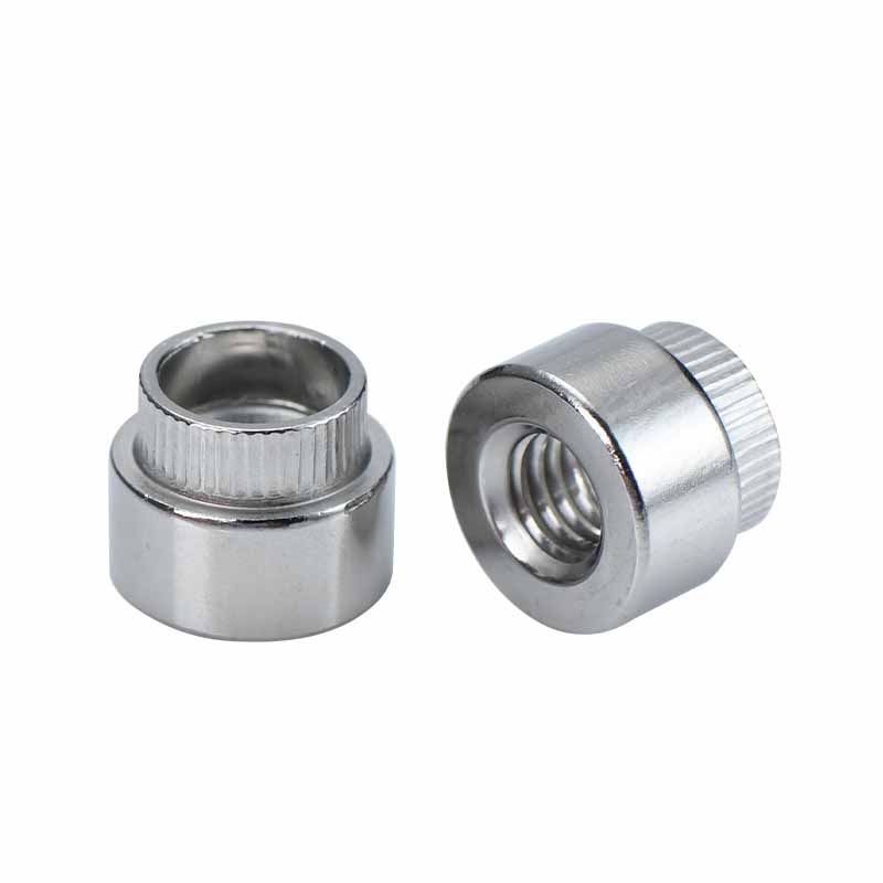 ໃນຂະນະດຽວກັນ, ສ່ວນຫມາກໄມ້ທີ່ມີສຽງມີກະທູ້ປົກກະຕິພາຍໃນ. flange knurled ໃຫຍ່ເຮັດວຽກສອງຢ່າງ: ມັນແຜ່ລາມອອກຈາກອຸປະກອນການບີບຕົວດັ່ງນັ້ນມັນບໍ່ໄດ້ເຮັດໃຫ້ວັດຖຸບາງໆຢູ່ໃນພື້ນຜິວເພື່ອຢຸດເຊົາການຫມູນວຽນທັງຫມົດໃນເວລາທີ່ທ່ານລ້ຽວ