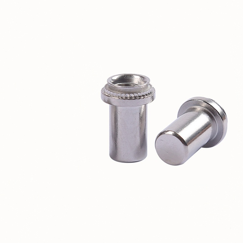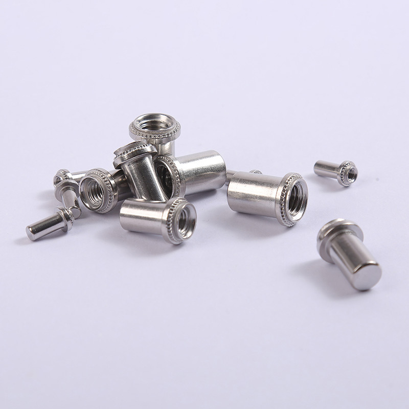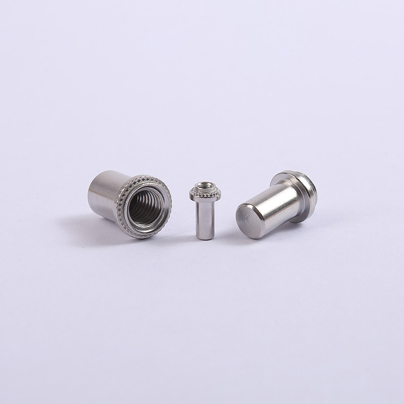 ການປະທັບຕາສະແຕນເລດທີ່ສະຖຽນລະພາບຂອງສະແຕນເລດແມ່ນ fastener ທີ່ມີຄວາມຊ່ຽວຊານເຊິ່ງໄດ້ຮັບການຕິດຕັ້ງຢ່າງຖາວອນໃນໂລຫະແຜ່ນ. ມັນມີສ່ວນປະທັບຕາທີ່ສ້າງມາ, ໂດຍປົກກະຕິແລ້ວແມ່ນເຄື່ອງຊັກຜ້າຢາງຫຼືປະທັບຕາທີ່ມີຝາປິດ, ຢູ່ໃຕ້ພື້ນຖານຂອງການກັກກັນ. ທ່ານກົດຫມາກໄມ້ຊະນິດນີ້ ("Clinch" ມັນ) ເຂົ້າໄປໃນຂຸມທີ່ກຽມໄວ້ກ່ອນໃນແຜ່ນ. ໃນເວລາທີ່ທ່ານເຮັດໂລຫະ, ໂລຫະອ້ອມຮອບຮູທີ່ເຮັດໃຫ້ມີກະທູ້ທີ່ແຂງແຮງ, ມີການໂຫຼດທີ່ແຂງແກ່ນ, ແລະໃນເວລາດຽວກັນ, ມັນບີບອັດ.