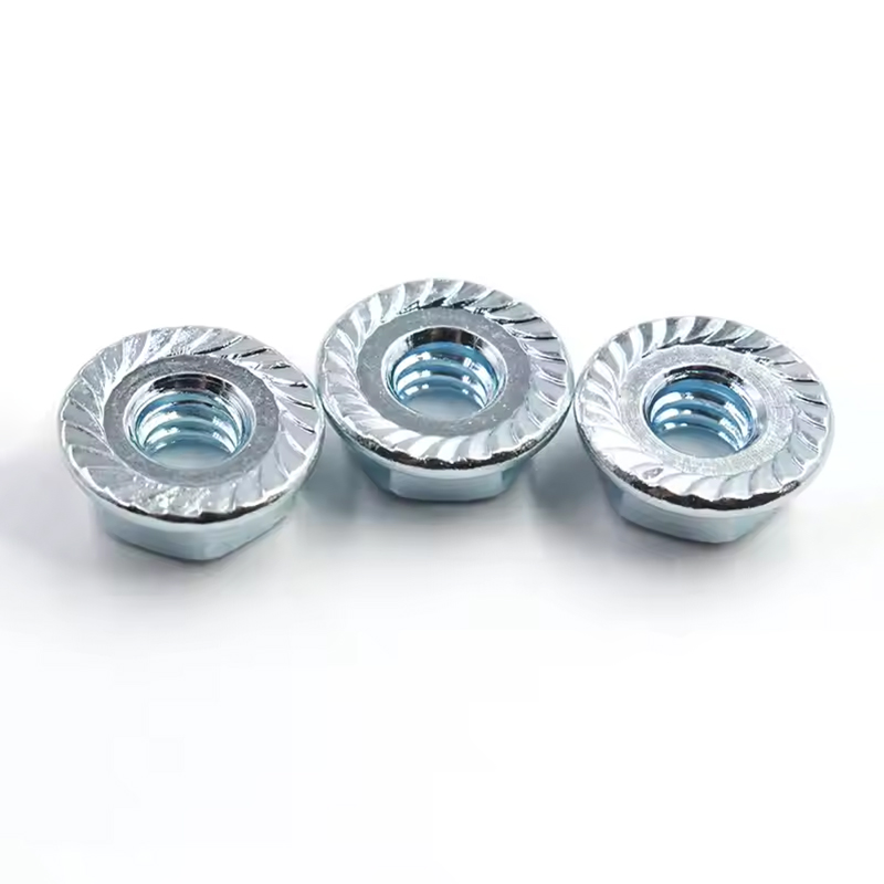 flange ຢູ່ດ້ານລຸ່ມຂອງZinc plated hexagon flange nutມີແຂ້ວຢູ່ດ້ານຂອງມັນ. ແຂ້ວເຫຼົ່ານີ້ສາມາດເພີ່ມຄວາມຂັດແຍ້ງກັບພື້ນຜິວຂອງພາກສ່ວນທີ່ເຊື່ອມໂຍງໃນເວລາທີ່ແຫນ້ນ, ມີປະສິດທິຜົນໃນການເຊື່ອມຕໍ່ຫຼືການເຊື່ອມຕໍ່ທີ່ມີຄວາມສາມາດ, ເຊັ່ນ: ການແກ້ໄຂບັນຫາທີ່ຫມັ້ນຄົງ.